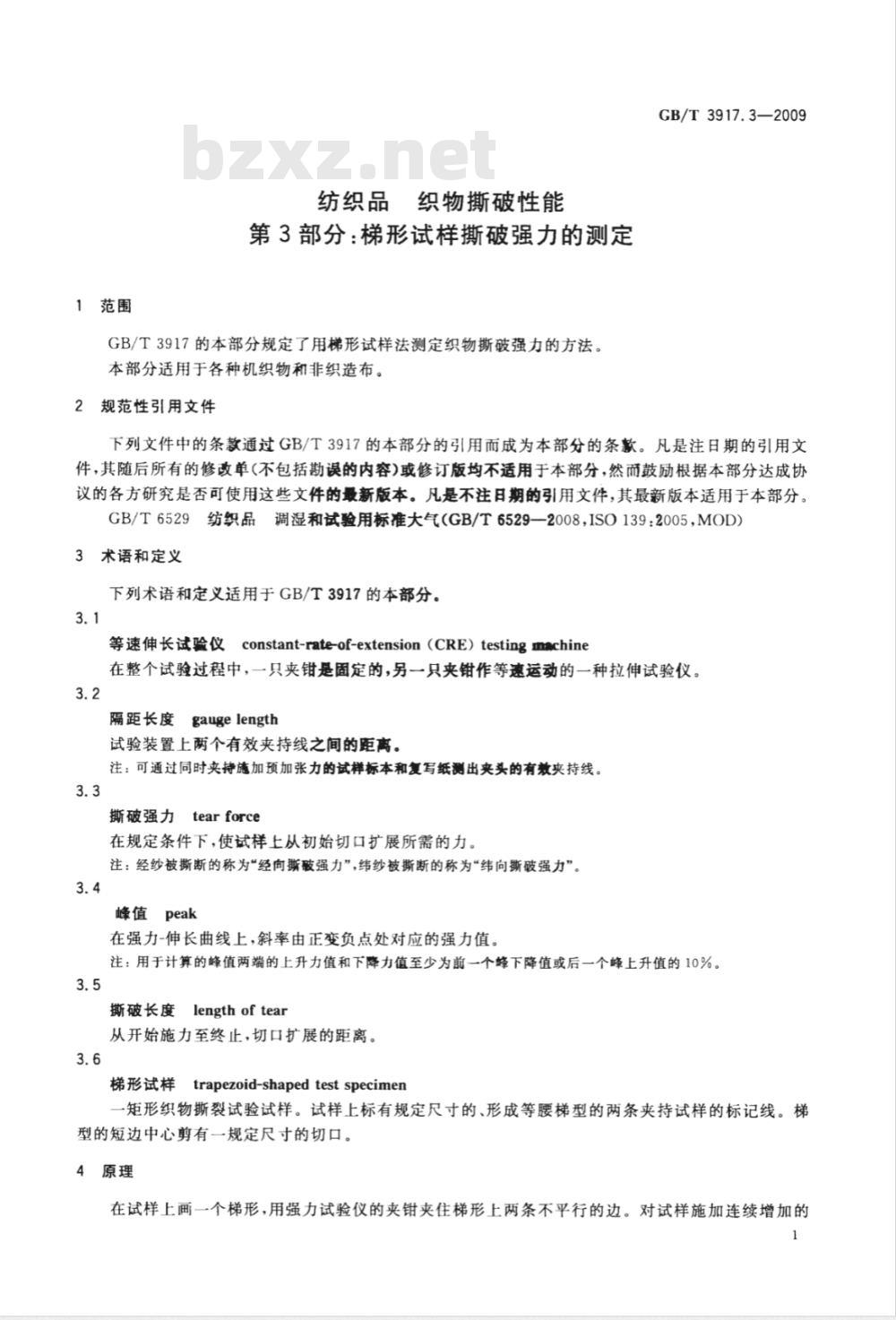 - GB/T 3917.3-2009 纺织品 织物撕破性能 第3部分:梯形试样撕破强力的测定