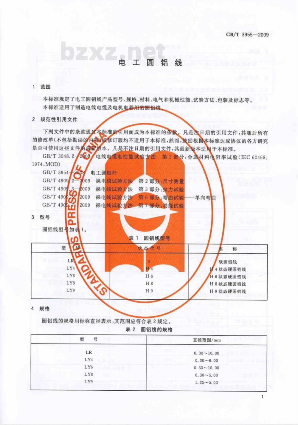 本标准规定了电工圆铝线产品型号、规格、材料、电气和机械性能、试验方法、包装及标志等。本标准适用于制造电线电缆及电机电器用的圆铝线。 GB/T 3955-2009 电工圆铝线 GB/T3955-2009