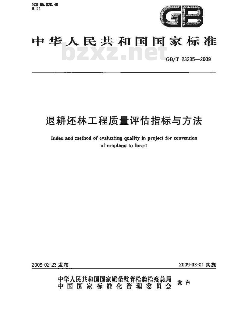 - GB/T 23235-2009 退耕还林工程质量评估指标与方法