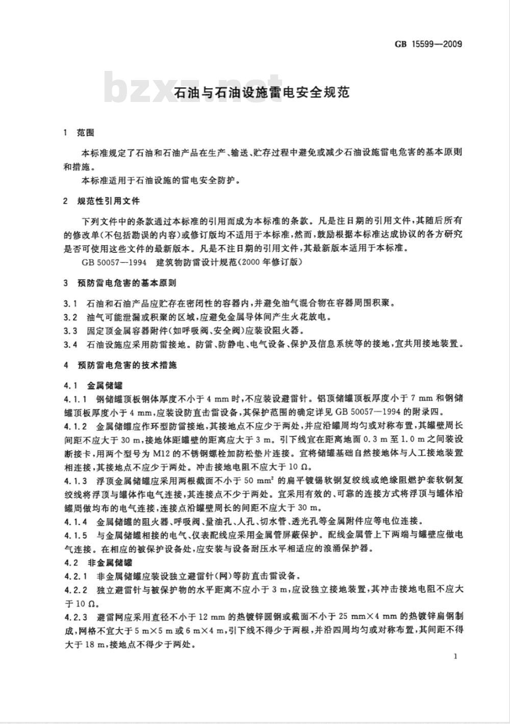 - GB 15599-2009 石油与石油设施雷电安全规范