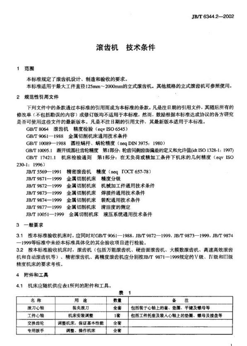 - JB/T 6344.2-2002 滚齿机 技术条件