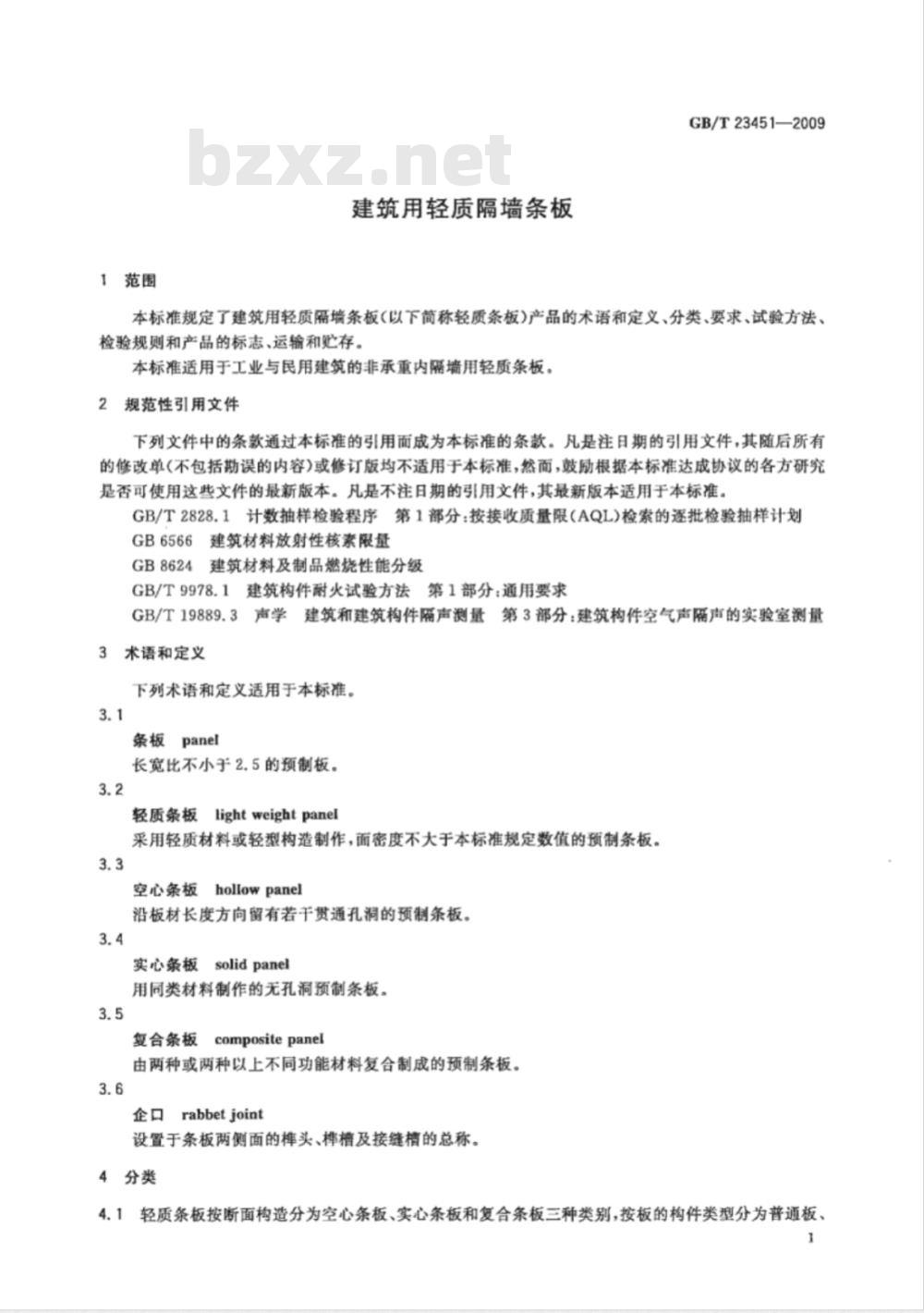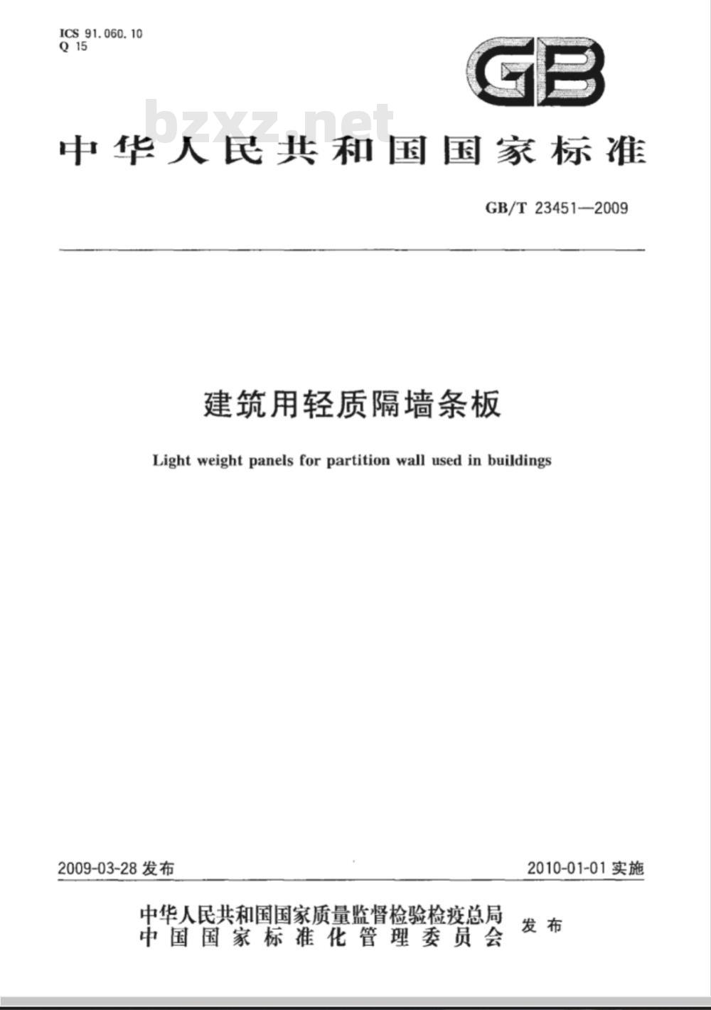 - GB/T 23451-2009 建筑用轻质隔墙条板
