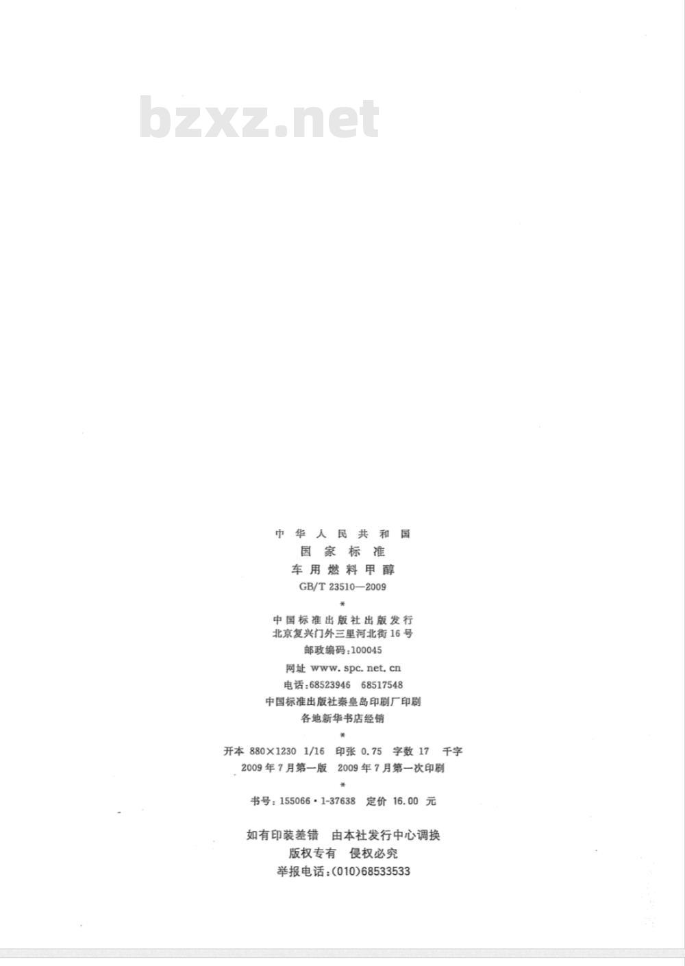 本标准规定了车用燃料甲醇的要求、试验方法、检验规则及标志、包装、运输、贮存和安全等。本标准适用车用燃料甲醇的生产、检验和销售。该产品用作车用甲醇燃料的原料。 GB/T 23510-2009 车用燃料甲醇 GB/T23510-2009