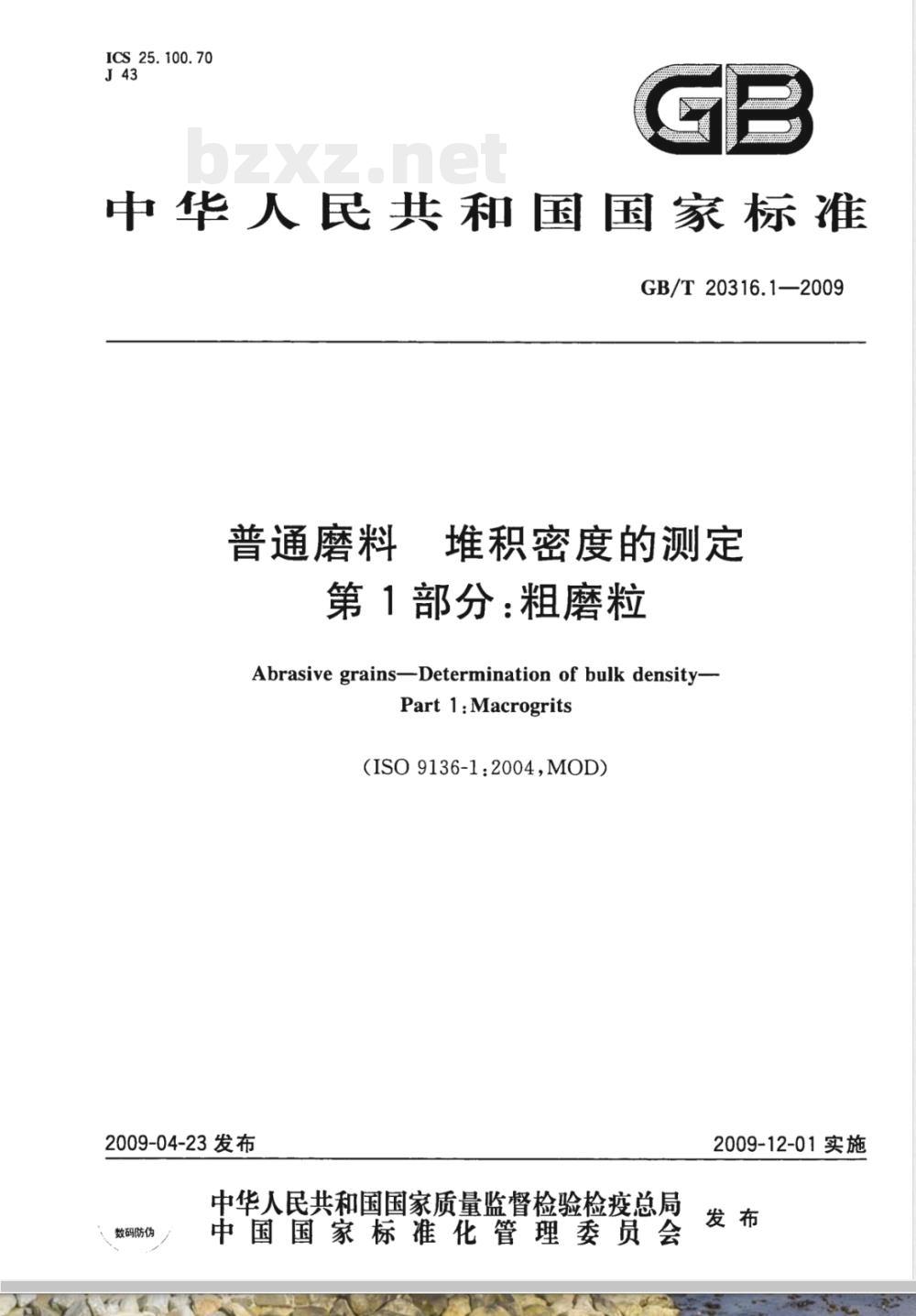 - GB/T 20316.1-2009 普通磨料 堆积密度的测定 第1部分:粗磨粒