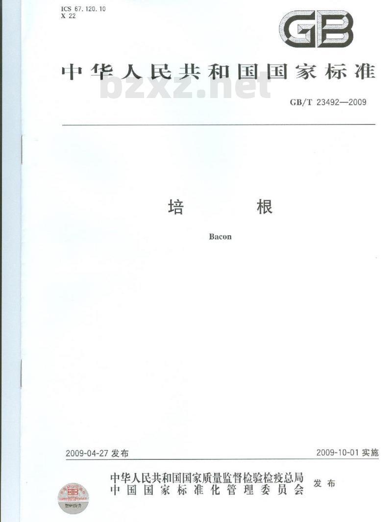 本标准规定了培根的定义、分类、卫生指标要求、检验方法、检验规则及标志、包装、运输、贮存、销售、召回要求。本标准适用于3.1定义产品的加工、检验和销售。 GB/T 23492-2009 培根 GB/T23492-2009