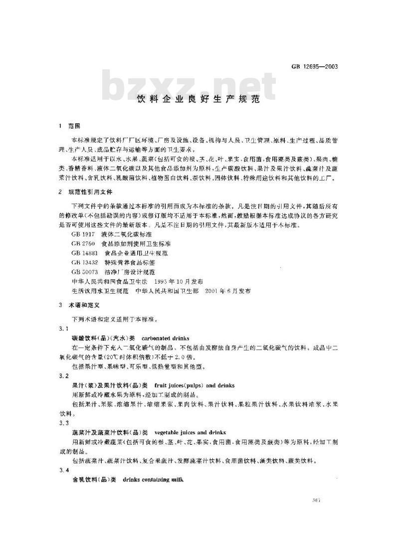 本标准代替GR126951990%饮料卫生规范》本标准与GB12695·1990相比士要修改内容如下:—标准名称政为饮料企业良好生产规范》;.--增加厂原标雄中未包括的含乳饮料乳酸菌饮料、植物蛋白饮料等内容;-增加了“品质管理”“品质管理设备”等内容;.