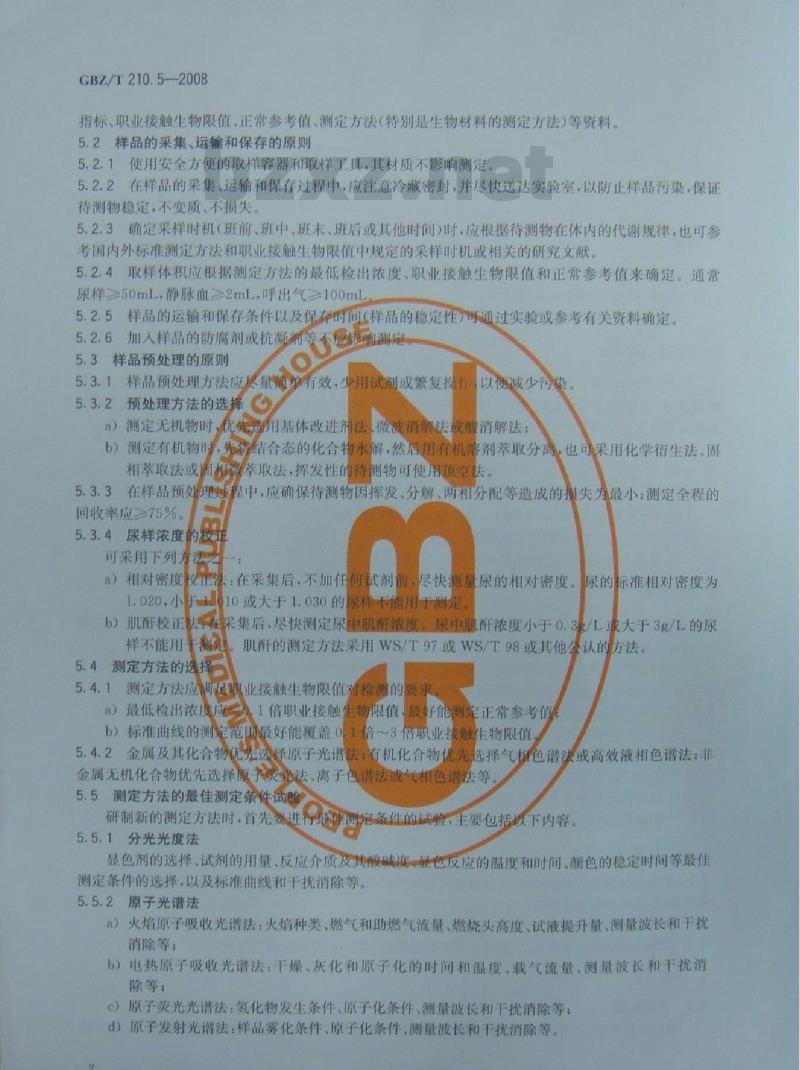- GBZ/T 210.5-2008 职业卫生标准制定指南 第5部分:生物材料中化学物质的测定方法