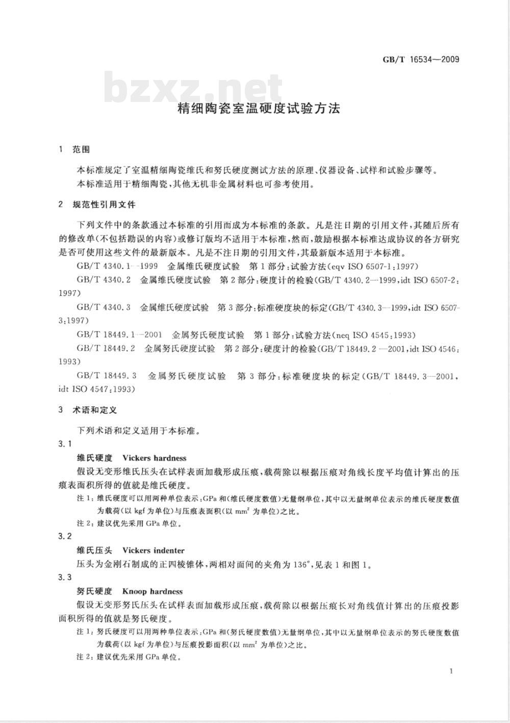 - GB/T 16534-2009 精细陶瓷室温硬度试验方法