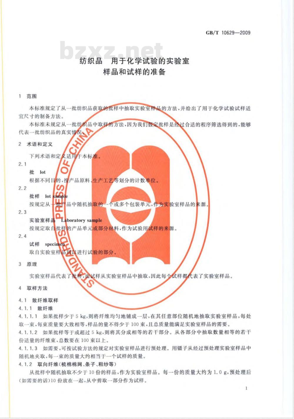 - GB/T 10629-2009 纺织品 用于化学试验的实验室样品和试样的准备