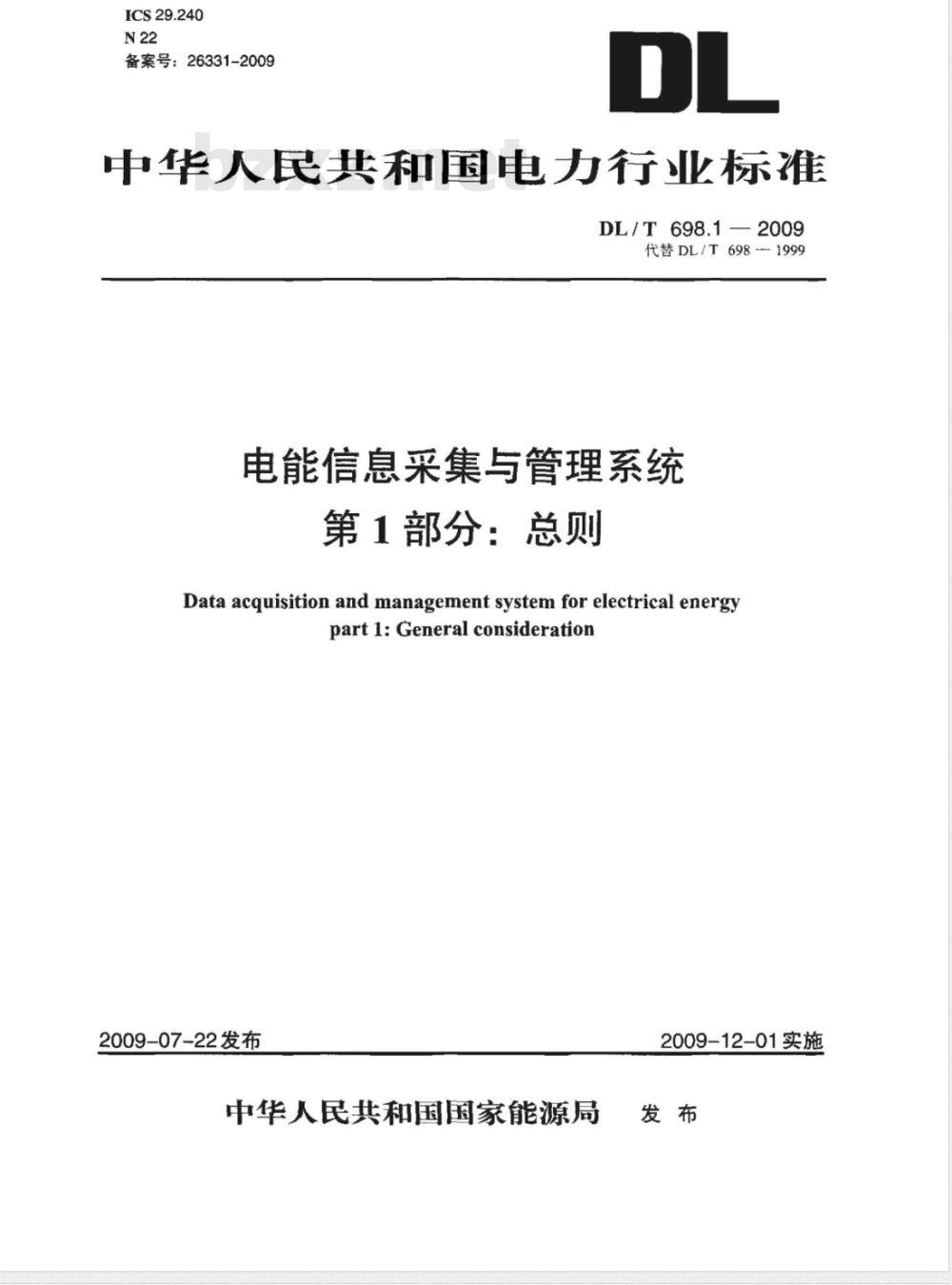 - DL/T 698.1-2009 电能信息采集与管理系统 第1部分:导则