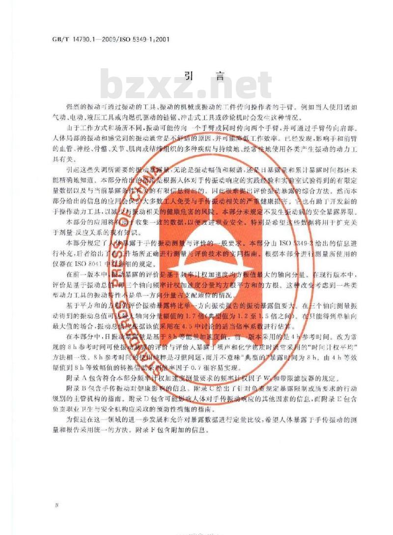 GB/T14790.1—2009/ISO5349-1:2001GB/T14790《机械振动人体暴露于手传振动的测量与评价》分为两个部分:第1部分:一般要求;