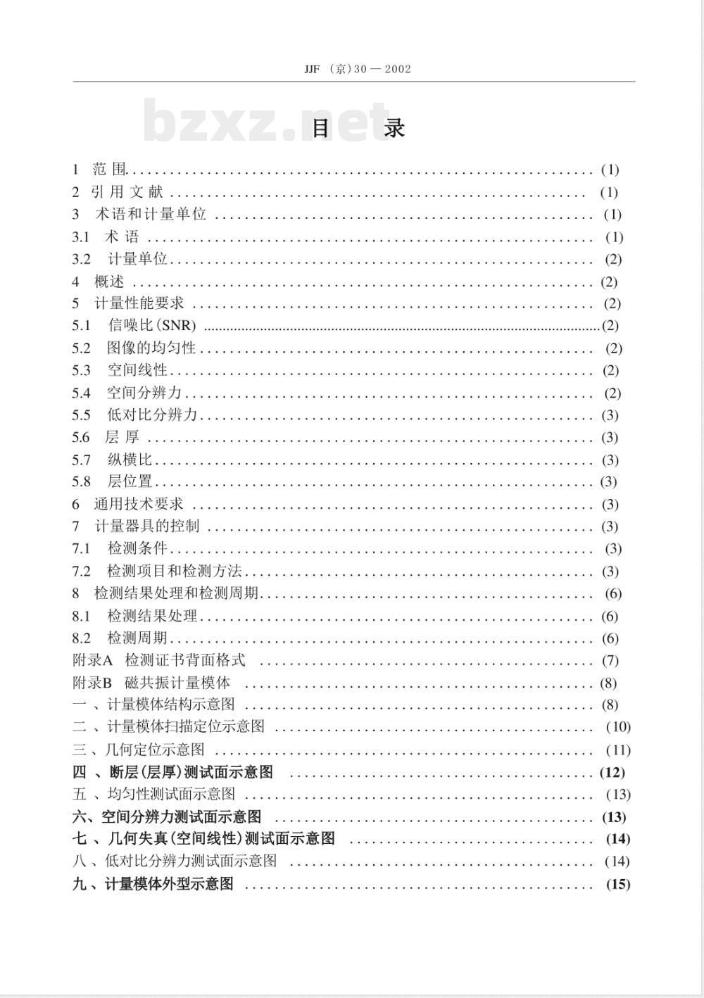 本规范适用于新安装、使用中和影响成像性能的部件修理后的医用磁共振成像系统(MRI)的检测。 JJF(京)30-2002 医用磁共振成像系统(MRI)检测规范 JJF(京)30-2002