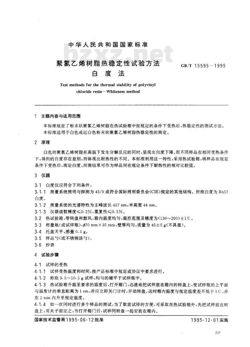 - GB/T 15595-1995 聚氯乙烯树脂热稳定性试验方法 白度法