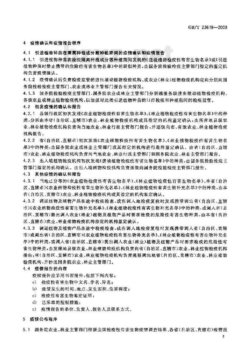 - GB/T 23618-2009 检疫性有害生物疫情报告、公布和解除程序