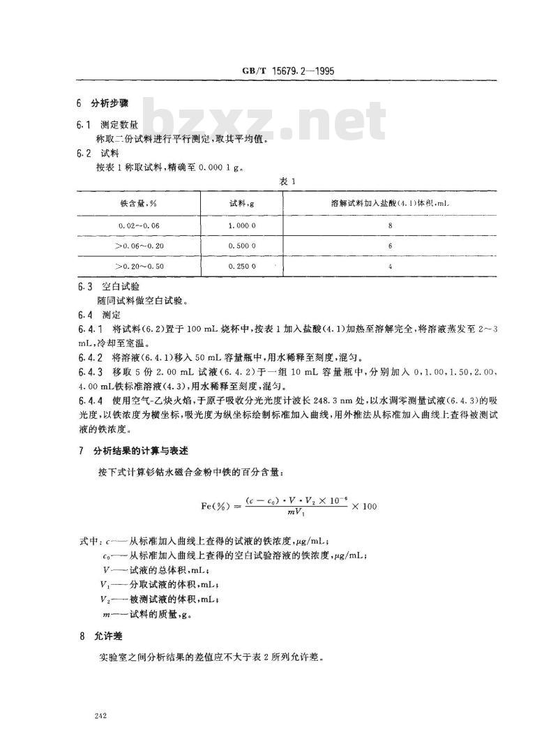 本标准适用于钻1-5型永磁合金粉中铁含量的测定,测定范围:0.02%~0.50%。2引用标准免费标准下载网bzxz