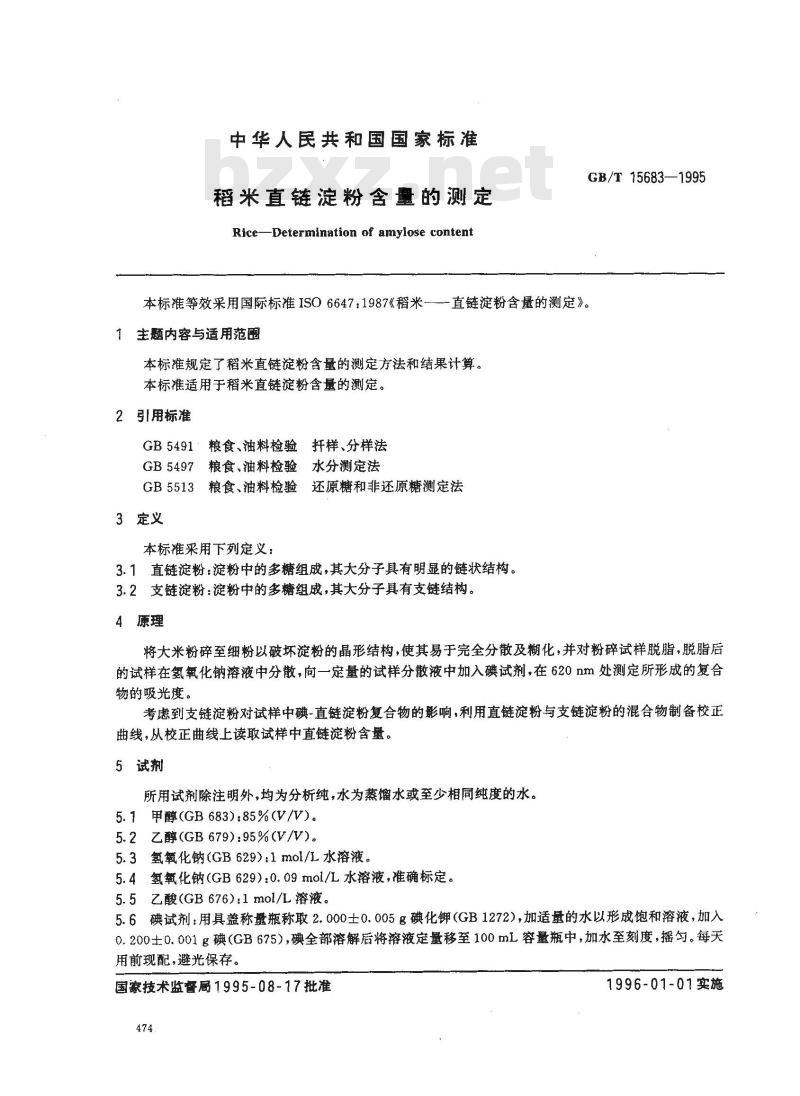 - GB/T 15683-1995 稻米直链淀粉含量的测定