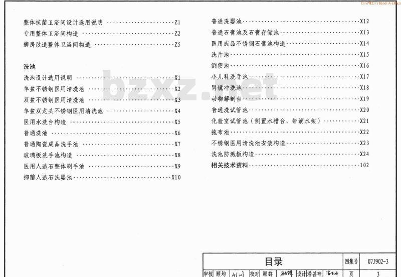 图集提供了医疗建筑中专用的无性别、无障碍、儿童、公共多种要领的卫生间及淋浴间的布置方式及相关隔墙、卫生设备安装构造;专用整体卫浴的相关构造;医用清洗水槽、刷手池、洗手池、洗婴池、石膏存储池、洗片池、倒便池、生化清洗池、拖布池等安装构造。适用不同等级、不同标准的材料与构造做法的多种选择。 07J902-3 医疗建筑-卫生间、淋浴间、洗池 07J902-3