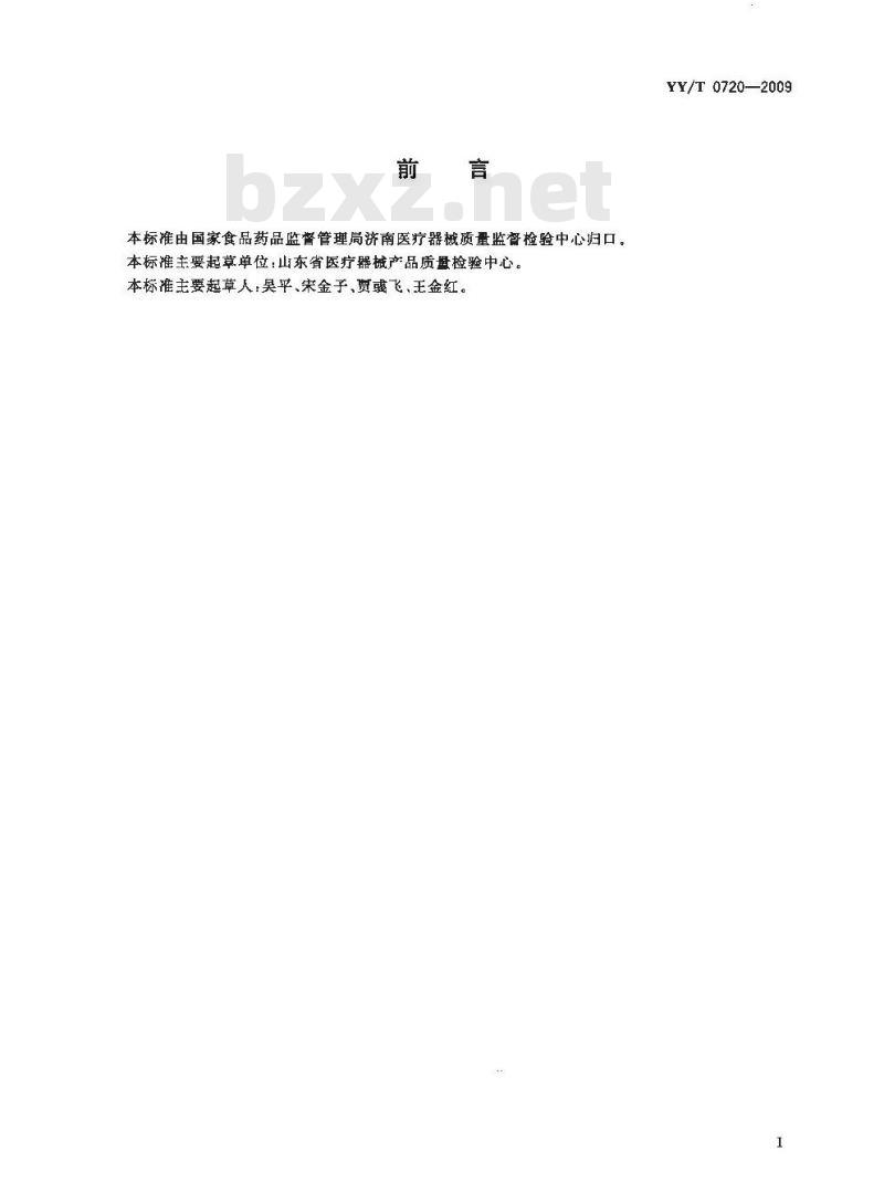 本标准由国家食品药品监督管理局济南医疗器械质量监督检验中心归口。本标主要起草单位:山东省医疗器械产品质盘检验中心。本标准主要起草人:吴平、宋金子、贯惑飞、王金红。YY/T0720—2009