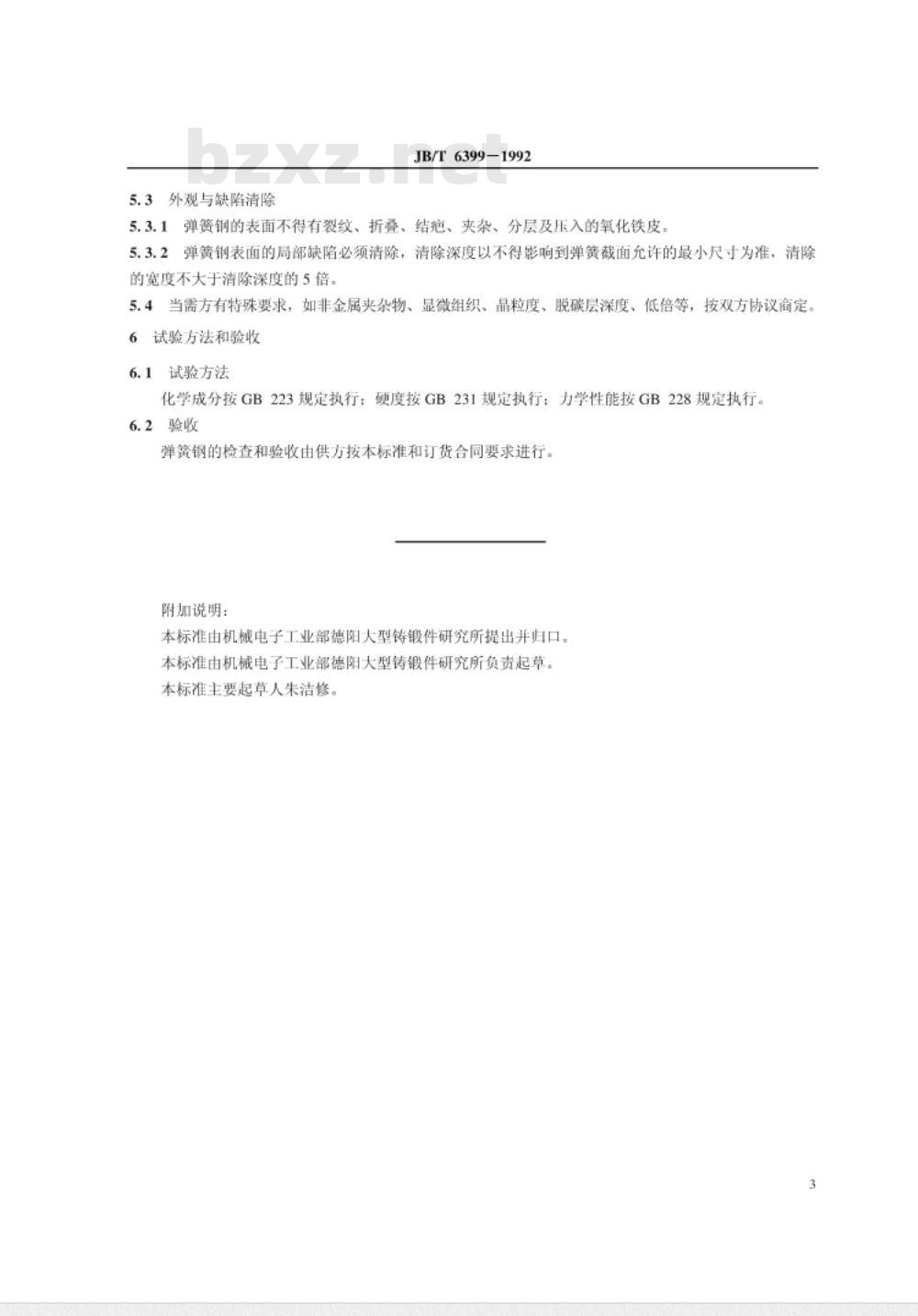 弹簧钢的检查和验收由供方按本标准和订货合同要求进行。附加说明: