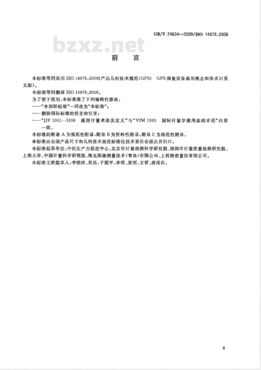本标准等同翻译ISO14978:2006。为了便于使用,本标准做了下列编辑性修改:—“本国际标准”一词改为“本标准”;—删除国际标准的前言和引言;GB/T24634—2009/ISO14978:2006GPS测量设备通用概念和要求》(英通用计量术语及定义”与“VIM1993—\JJF1001—1998