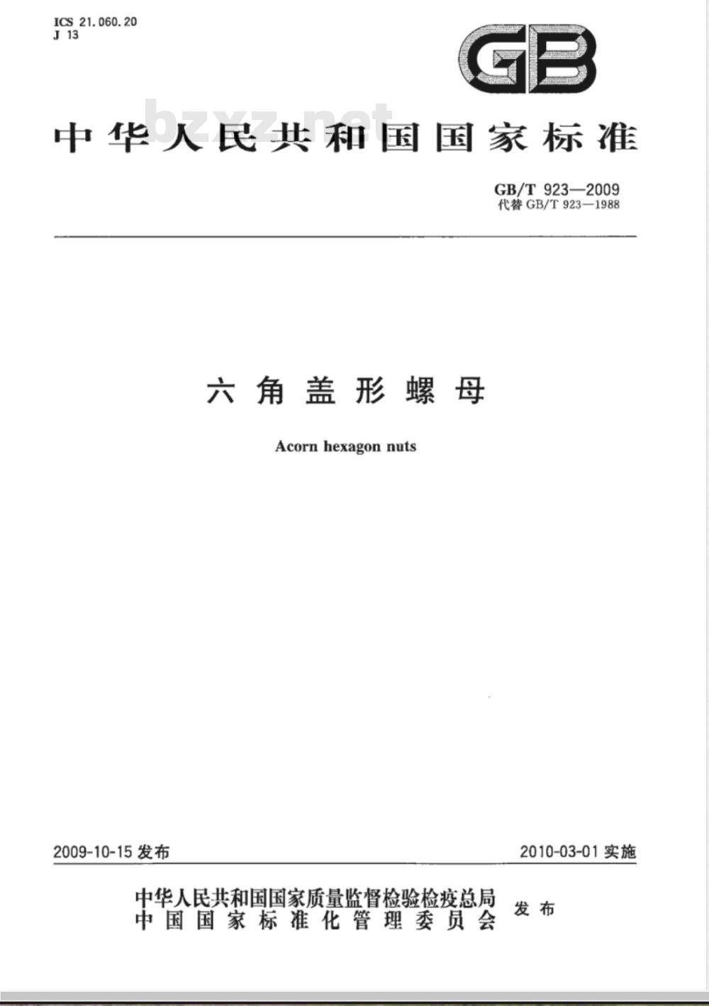 增加不锈钢和有色金属材料的螺母(见表2);一对钢螺母增加非电解锌片涂层及热浸镀锌层表面处理(见表2)。本标准由中国机械工业联合会提出。本标准由全国紧固件标准化技术委员会归口。本标准负责起草单位:中机生产力促进中心、张家港市新艺五金有限公司。本标准所代替标准的历次版本发布情况为:GB923—1967、GB923—1976、GB/T923—1988。I
