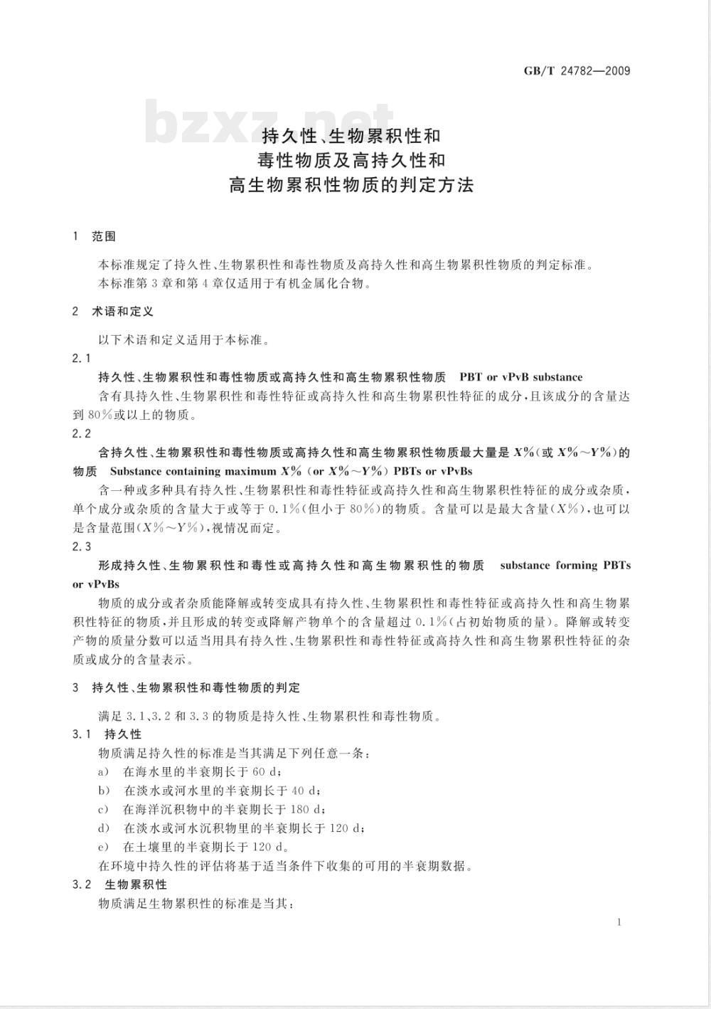 - GB/T 24782-2009 持久性、生物累积性和毒性物质及高持久性和高生物累积性物质的判定方法