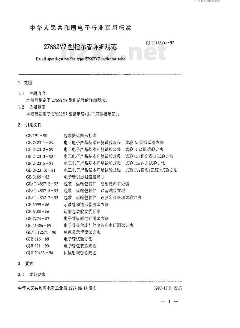 - SJ 20463.4-1997 27SS2Y7型指示管详细规范