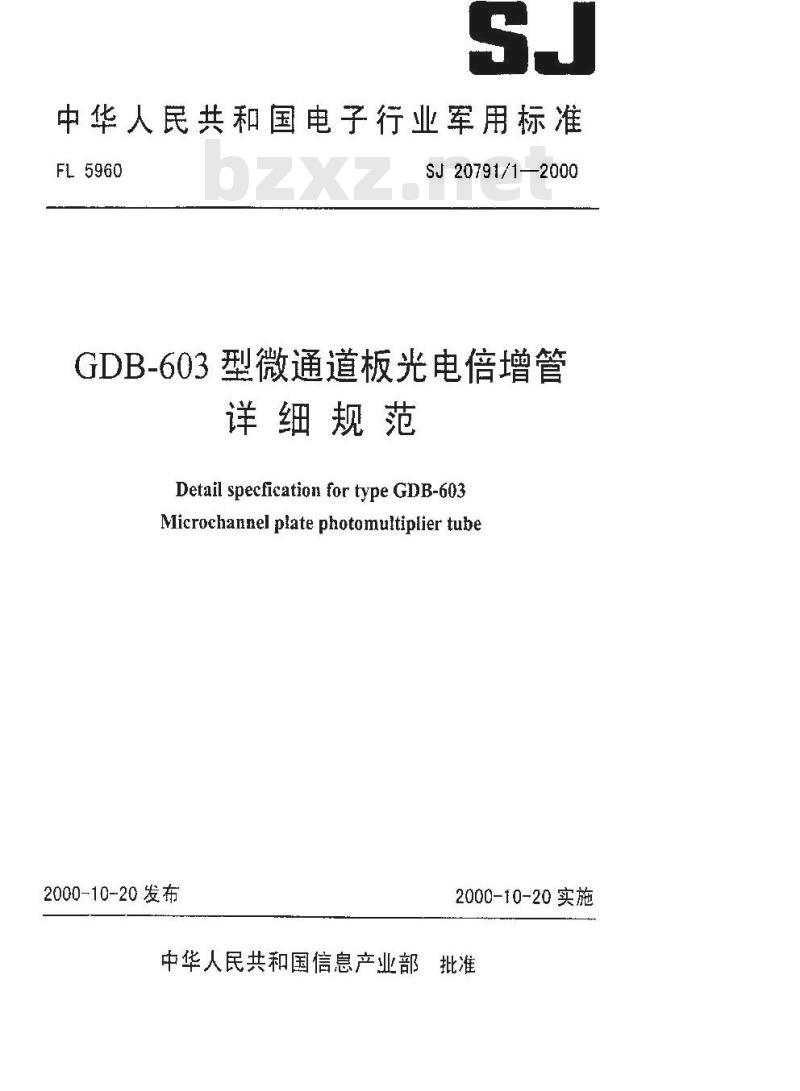 - SJ 20791.1-2000 GDB-603型微通道板光电倍增管详细规范