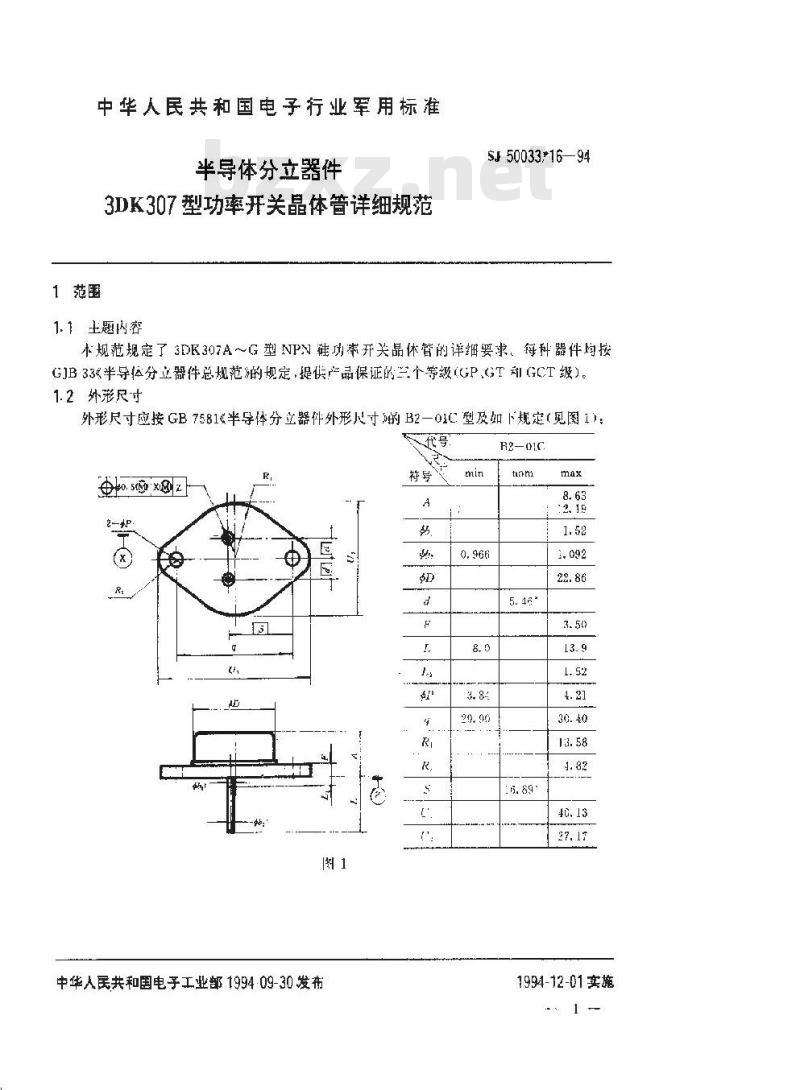 - SJ 50033.16-1994 半导体分立器件 3DK307型功率开关晶体管详细规范