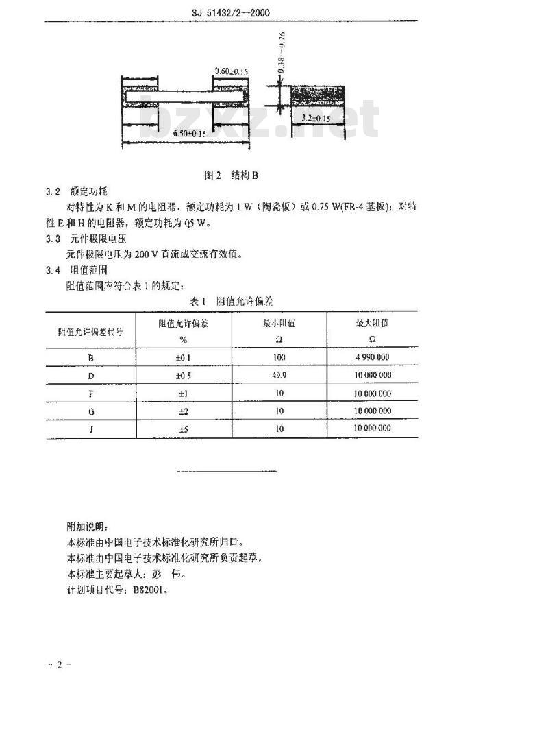 - SJ 51432.2-2000 RMK6332型有可靠性指标的片式膜固定电阻器详细规范