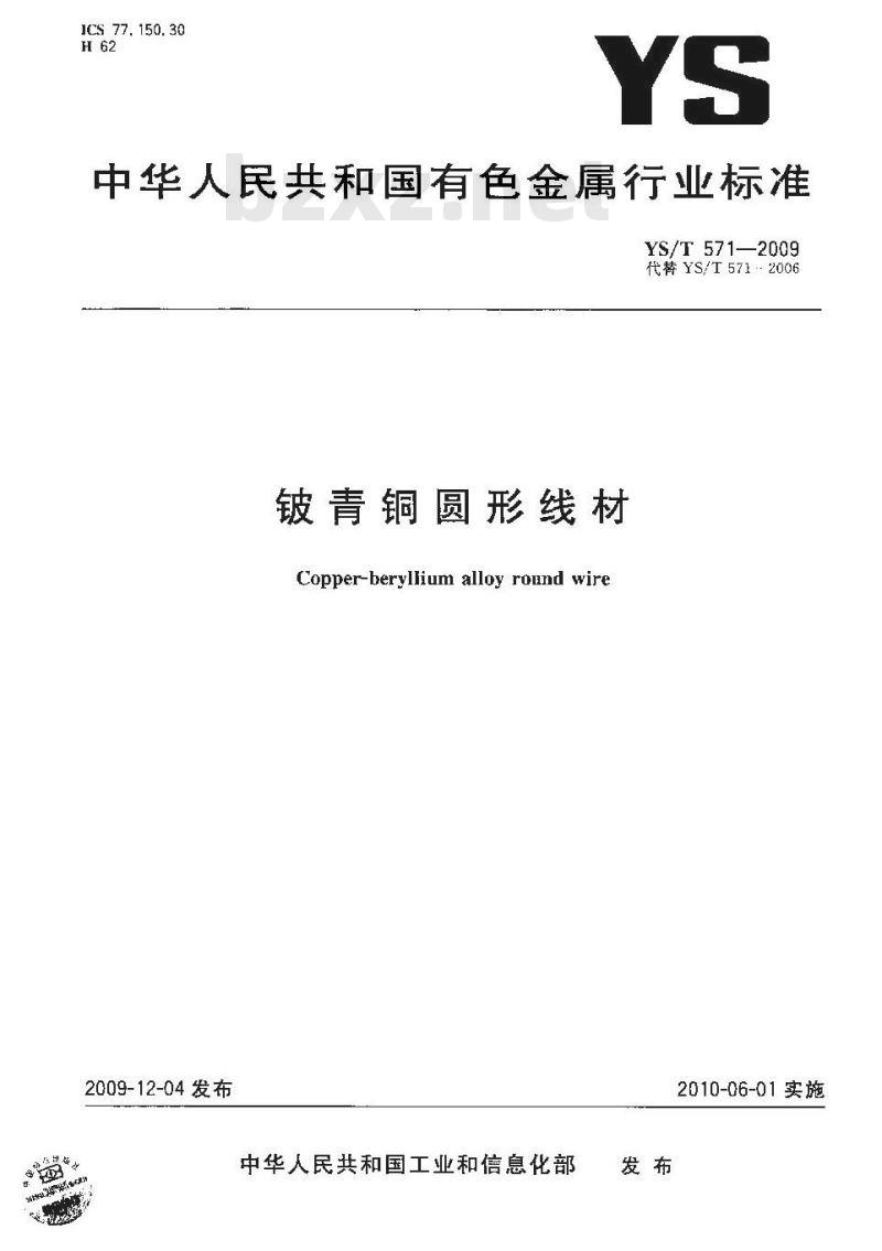 - YS/T 571-2009 铍青铜圆形线材
