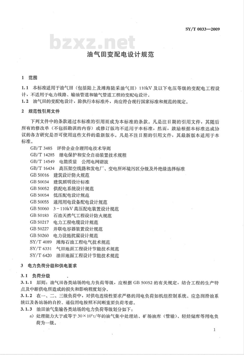 1.1本标准适用于油气田(包括陆上及滩海陆采油气田)110kV及以下电压等级的变配电工程设计,不适用于电力线路、输油管道和输气管道工程的变配电设计。1.2油气田的变配电设计,除执行本标准外,尚应符合现行国家标准和规范的规定。2规范性引用文件