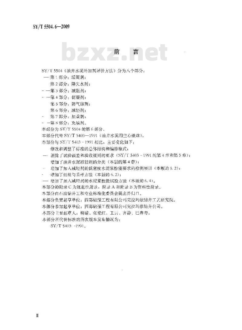 - SY/T 5504.6-2009 油井水泥外加剂评价方法 第6部分:减轻剂