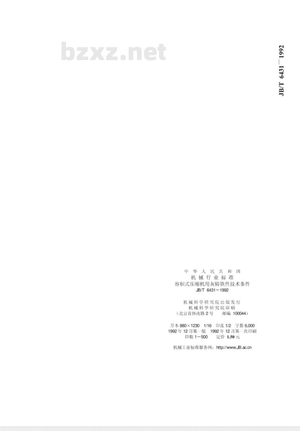 - JB/T 6431-1992 容积式压缩机用灰铸铁件 技术条件