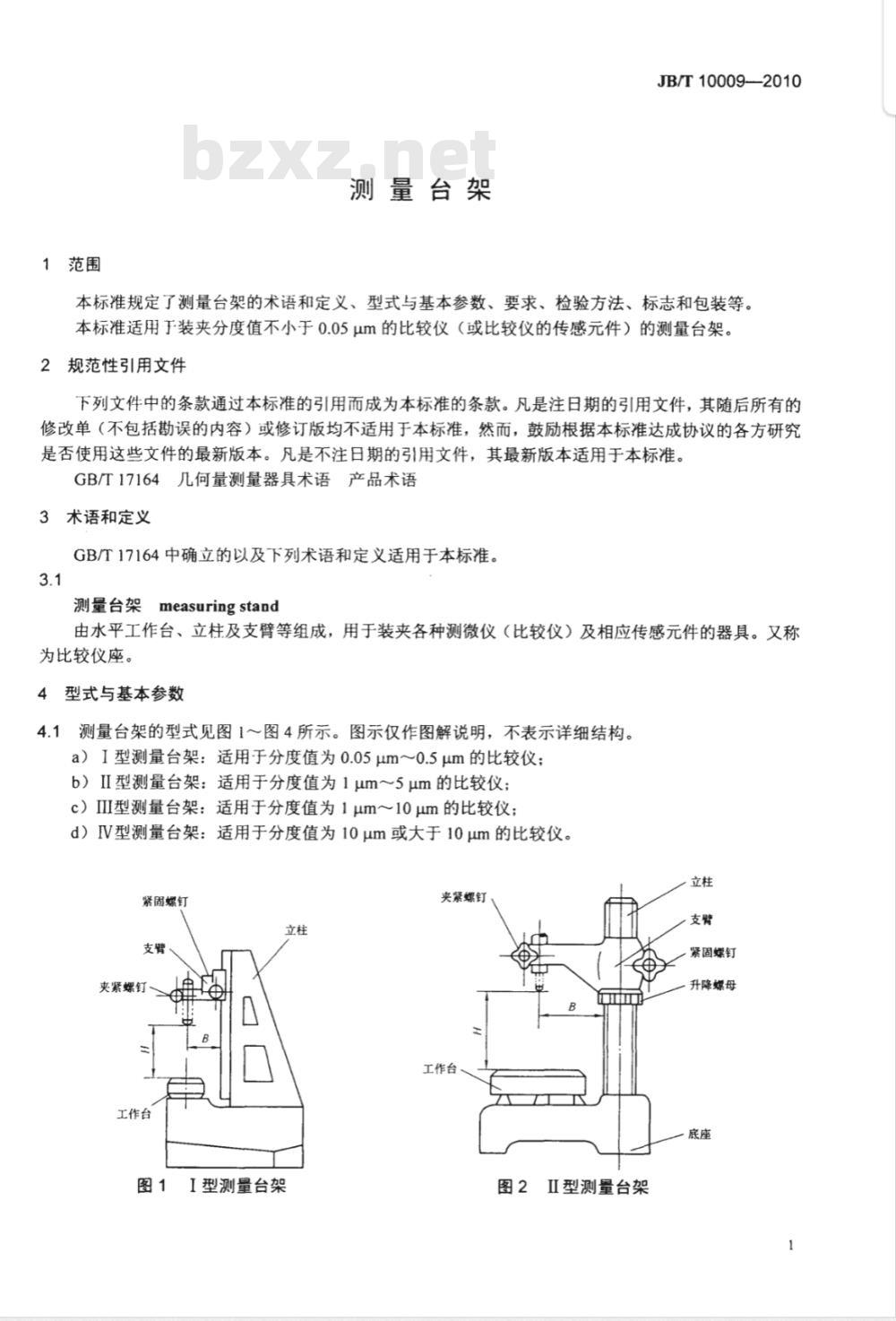 本标准代替JB/T10009一1999《比较仪座》。本标准与JB/T10009一1999相比,主要变化如下:一修改了标准名称,改为《测量台架》;一增加了规范性引用文件(本版的2);--增加了测量台架的术语和定义(本版的3.1);JB/T10009—2010
