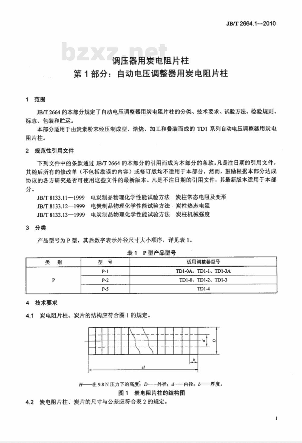 - JB/T 2664.1-2010 调压器用炭电阻片柱 第1部分:自动电压调整器用炭电阻片柱