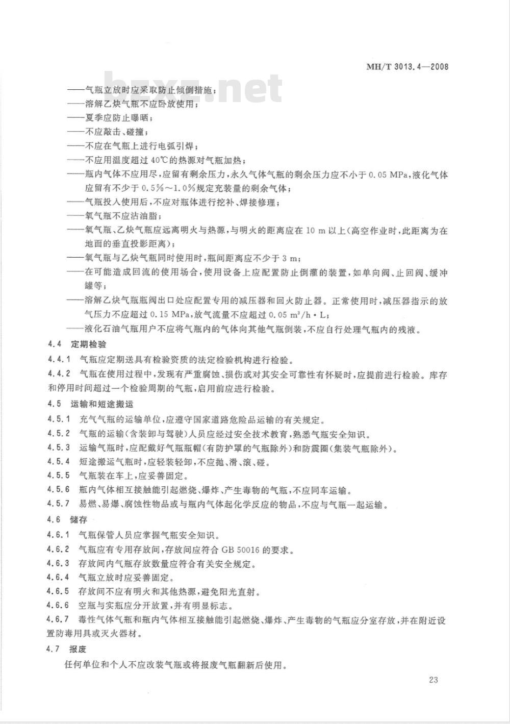 - MH/T 3013.4-2008 民用航空器维修标准 职业安全健康 第4部分:地面气瓶安全管理规则