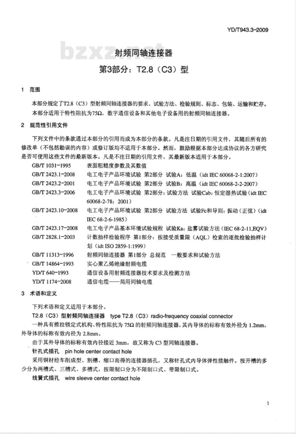- YD/T 943.3-2009 射频同轴连接器 第3部分:T2.8(C3)型