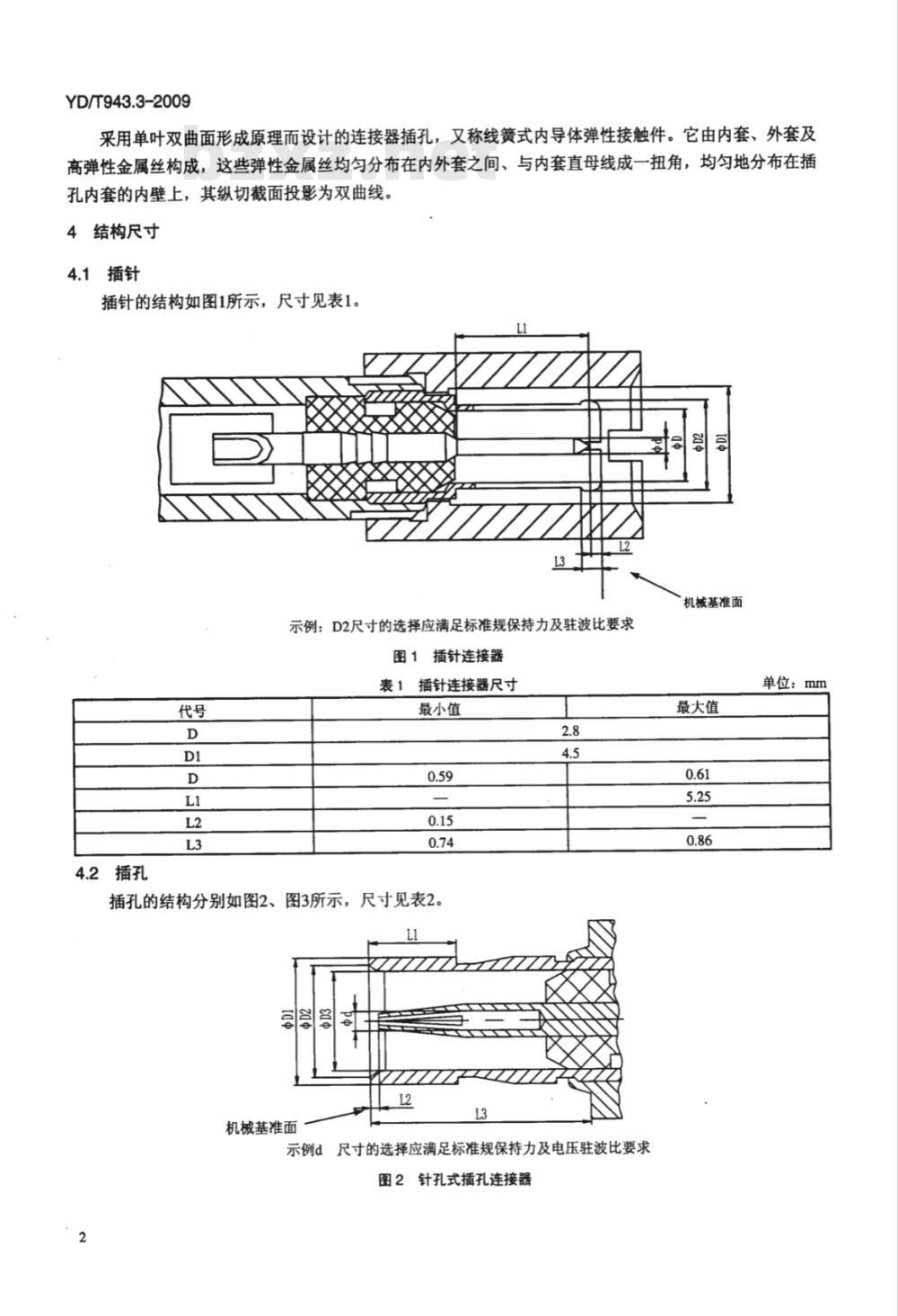 YD/T943《射频同轴连接器》分为以下4个部分:第1部分:T5.6(L9)型;