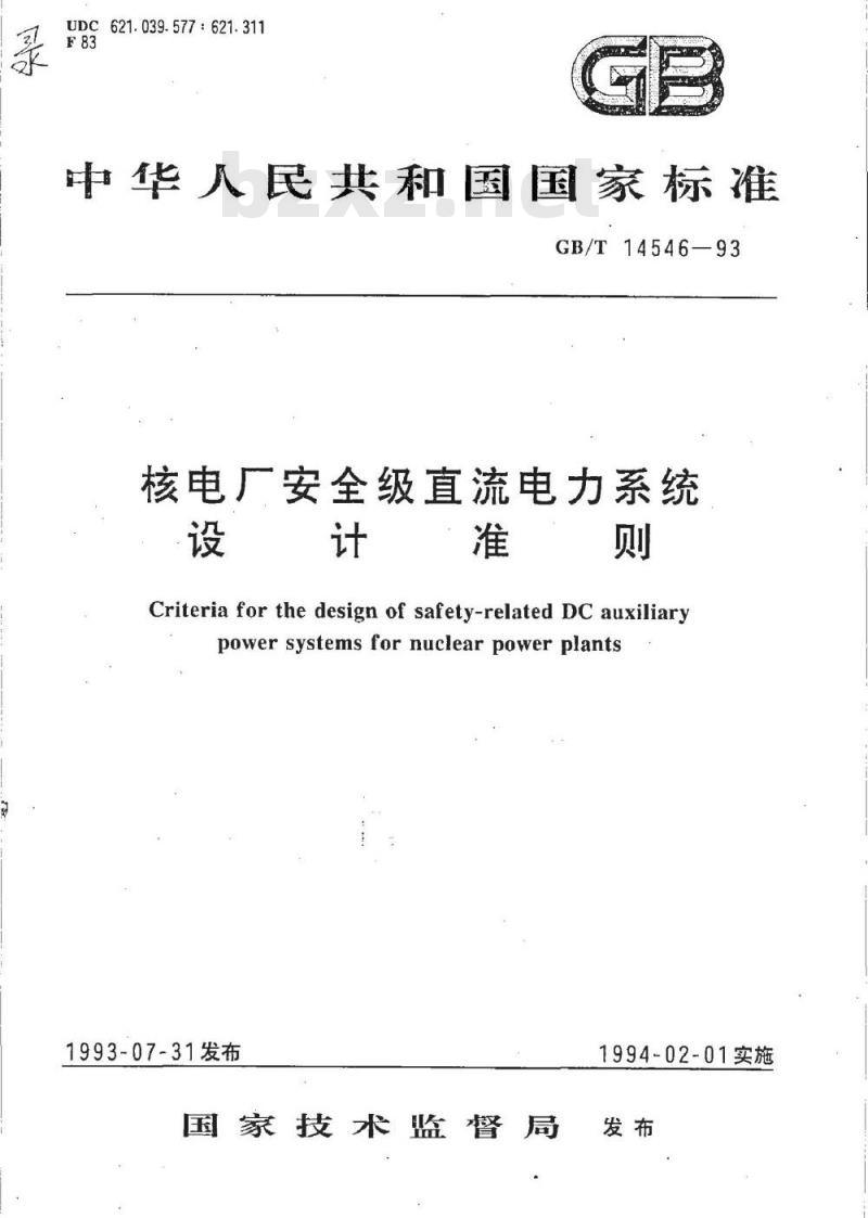 - GB/T 14546-1993 核电厂安全级直流电力系统 设计准则