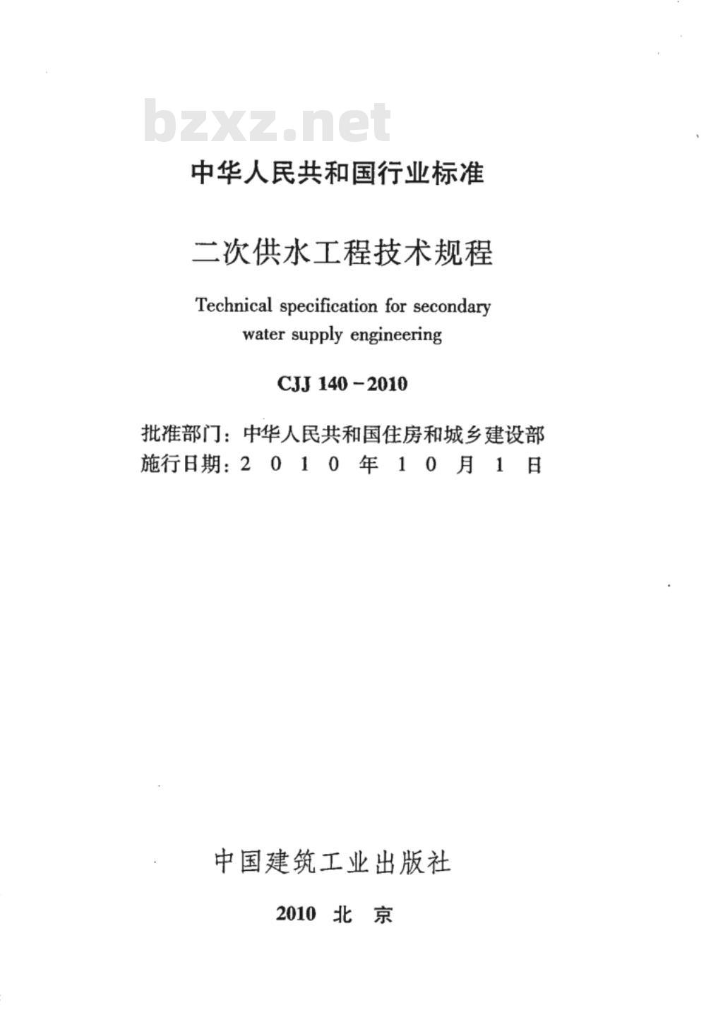 - CJJ 140-2010 二次供水工程技术规程