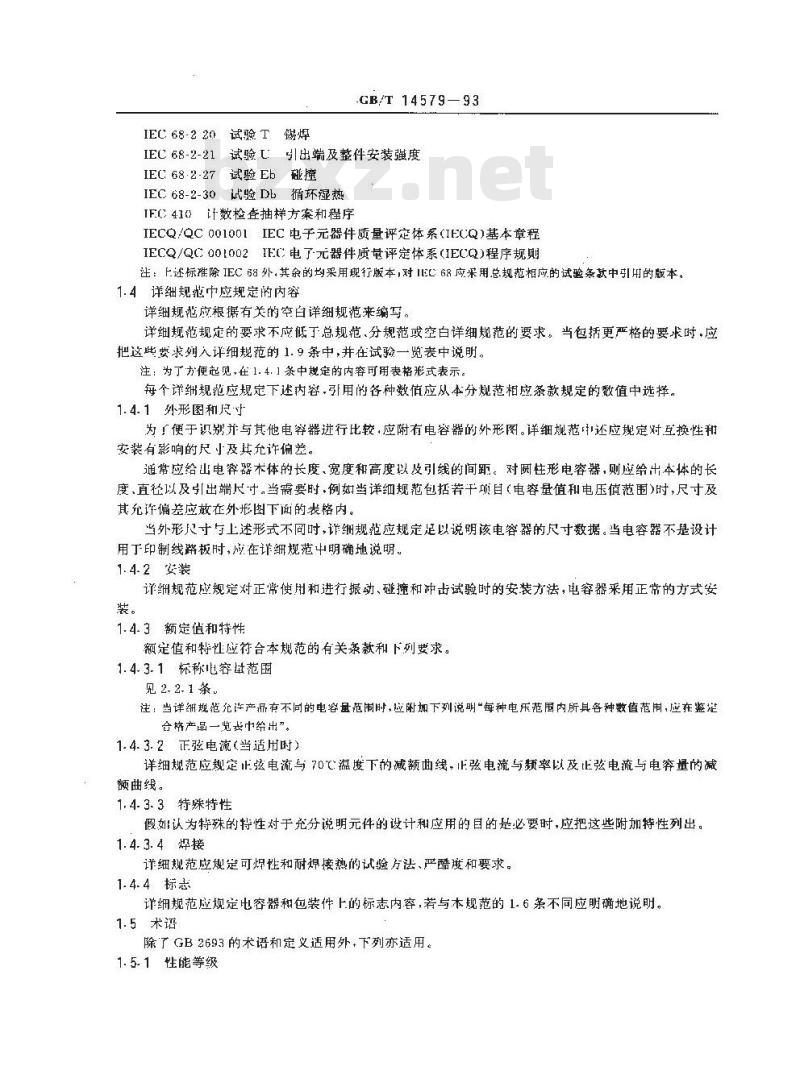 详细规范应规定可焊性和耐焊接热的试验方法、严酷度和要求。1.4.4标志
