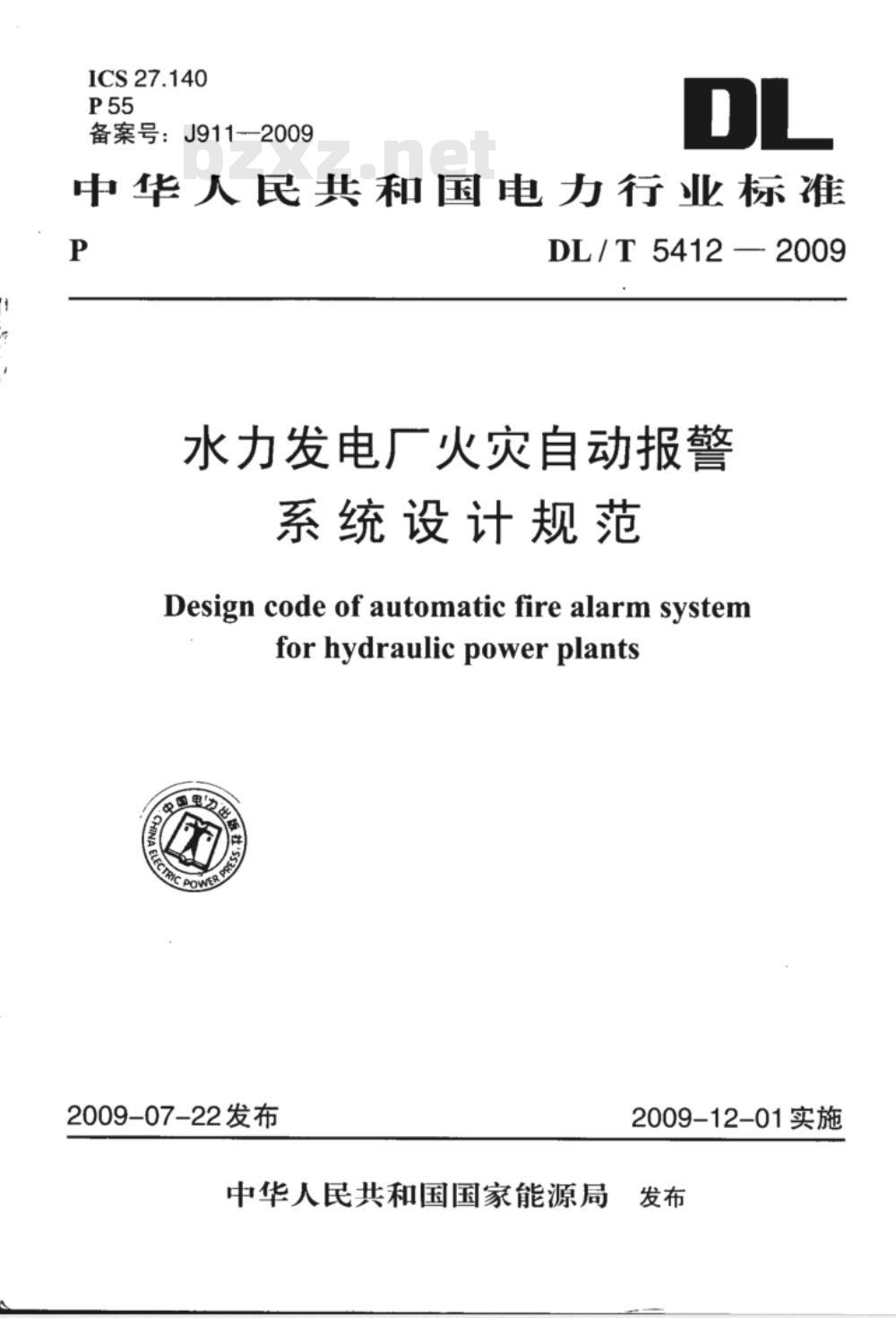 - DL/T 5412-2009 水力发电厂火灾自动报警系统设计规范