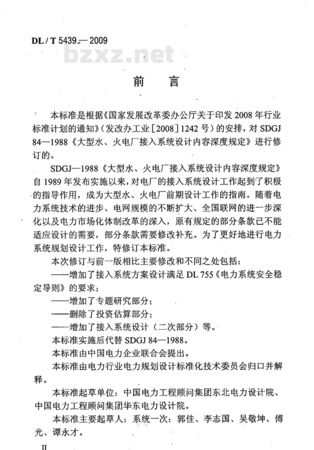 本标准是根据《国家发展改革委办公厅关于印发2008年行业标准计划的通知》(发改办工业「200811242号)的安排,对SDG)84一1988《大型水、火电厂接入系统设计内容深度规定》·进行修订的。