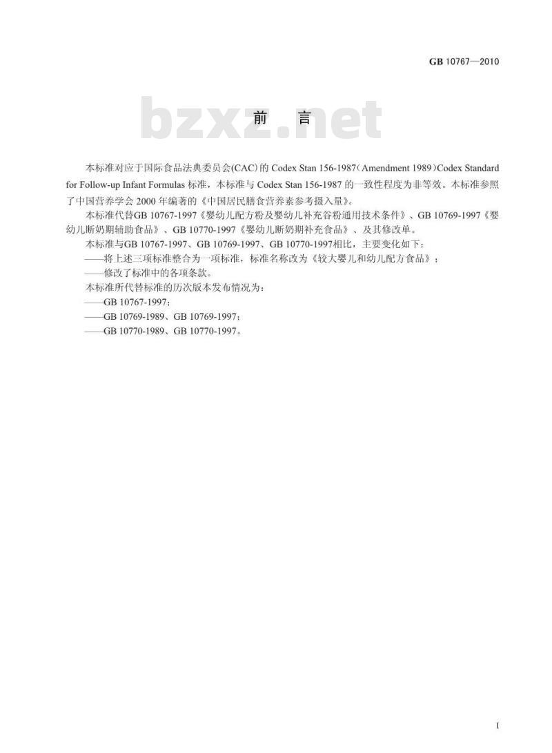 - GB 10767-2010 食品安全国家标准较大婴儿和幼儿配方食品