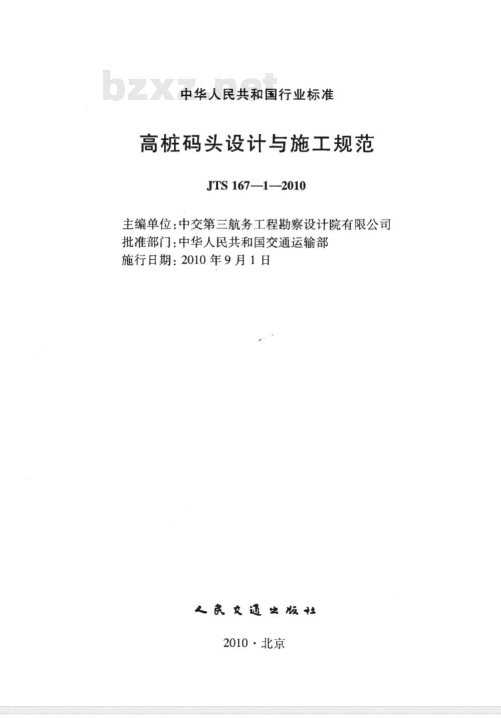 (如有印刷、装订质量问题的图书由本社负责调换)关于发布《高桩码头设计与施工规范》(JTS167一1一2010)的公告