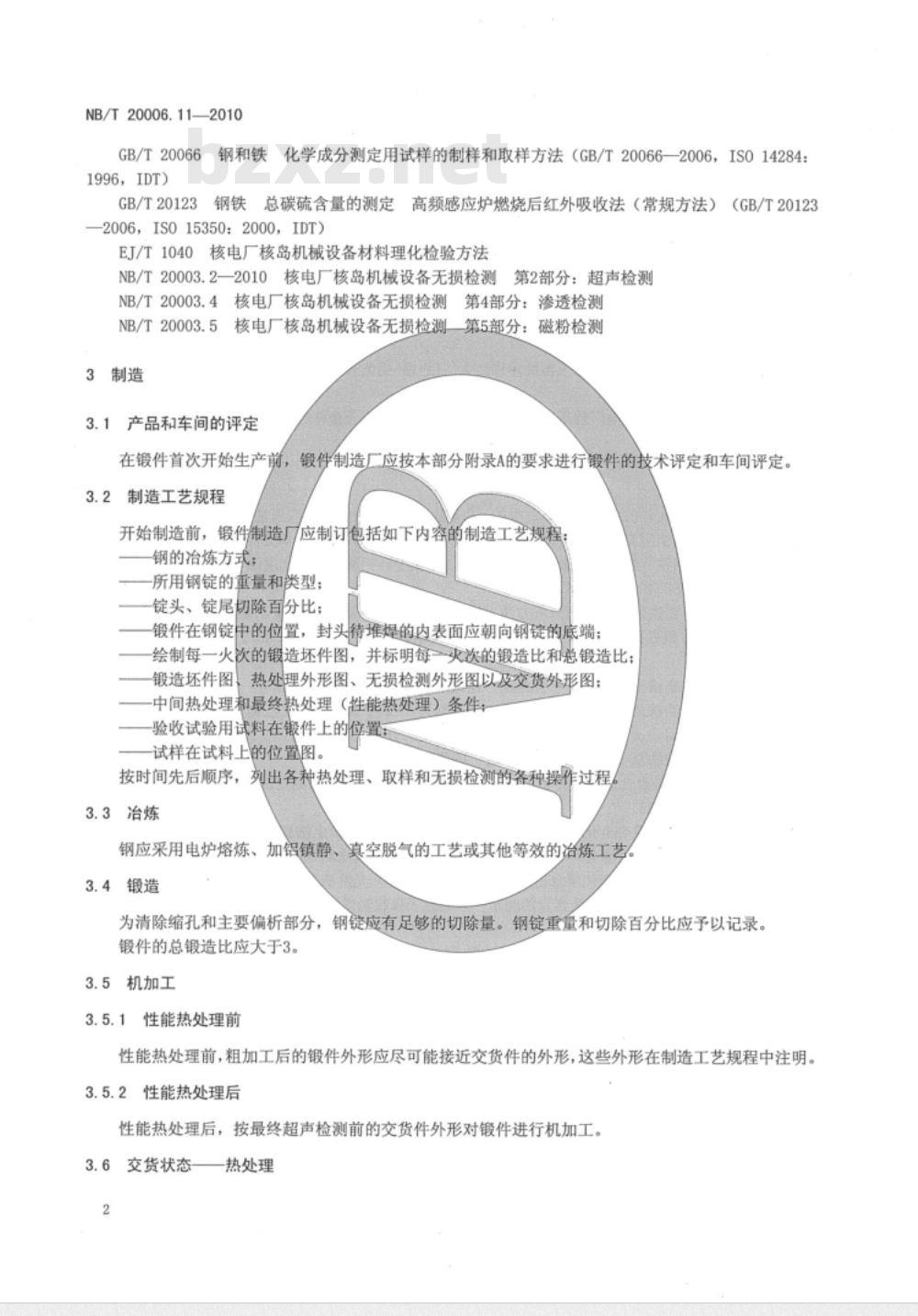 - NB/T 20006.11-2010 压水堆核电厂用合金钢 第11部分:稳压器筒体、封头用锰-镍-钼钢锻件