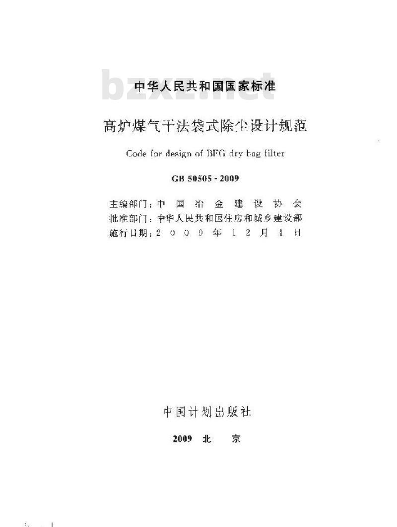 高炉煤气干法袋式除尘设计规范Code far design of BFG dry bag filterGB50505-2099