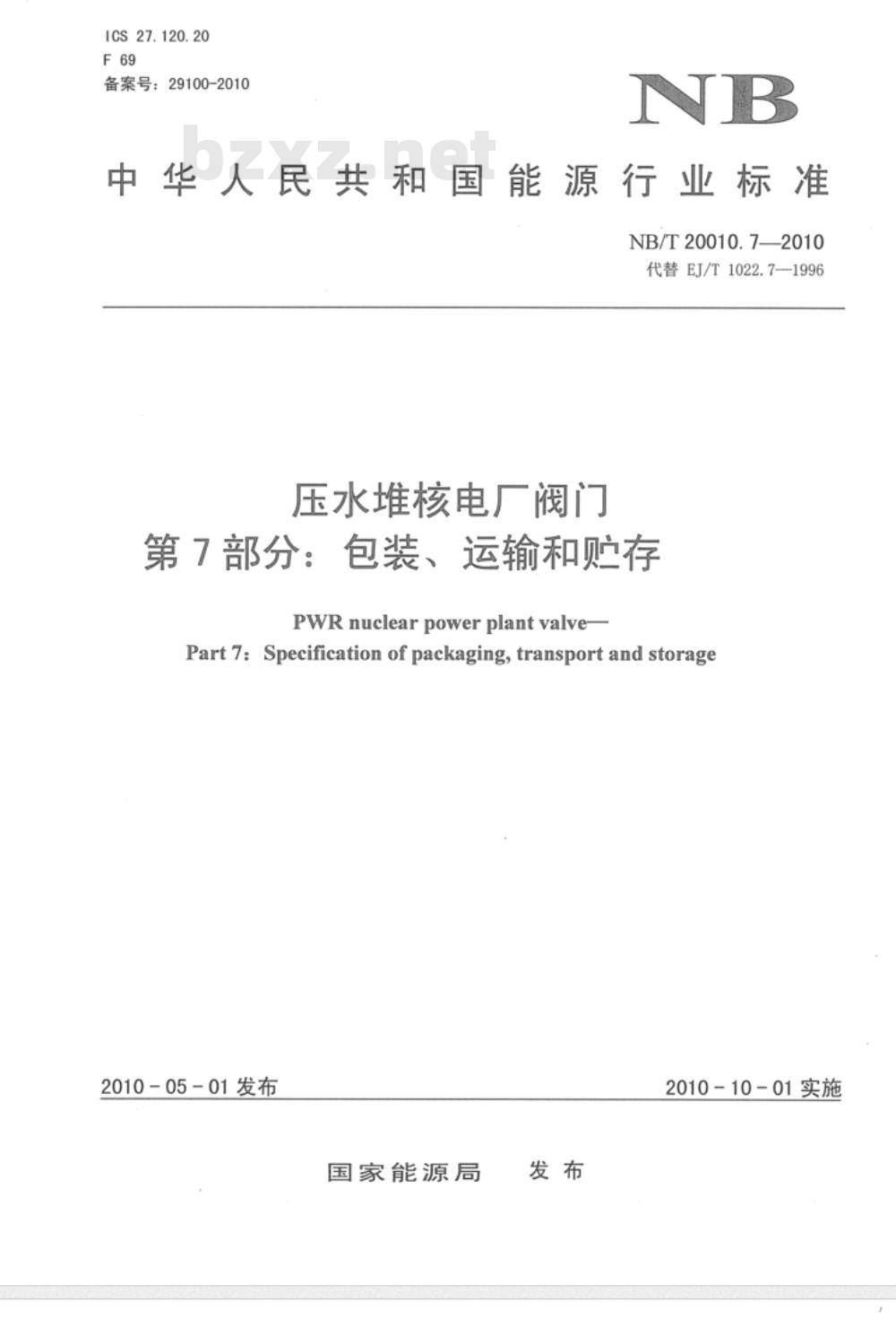- NB/T 20010.7-2010 压水堆核电厂阀门 第7部分:包装、运输和贮存