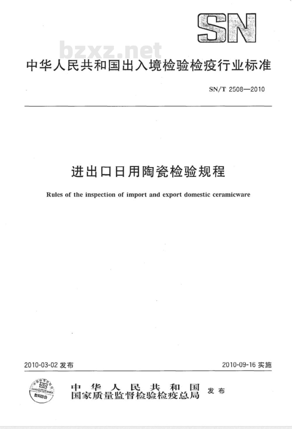 - SN/T 2508-2010 进出口日用陶瓷检验规程